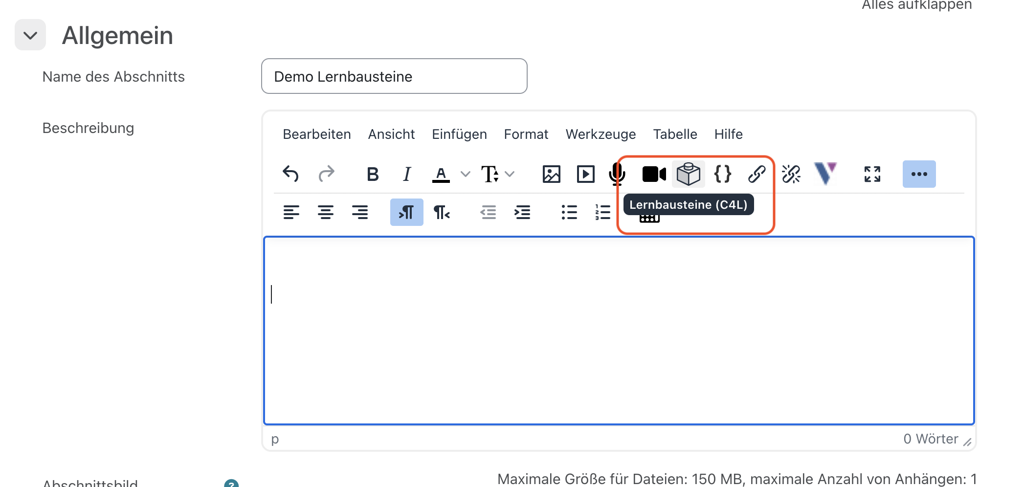 C4l steht für components for learning. Das Icon finden befindet sich im Editor.
