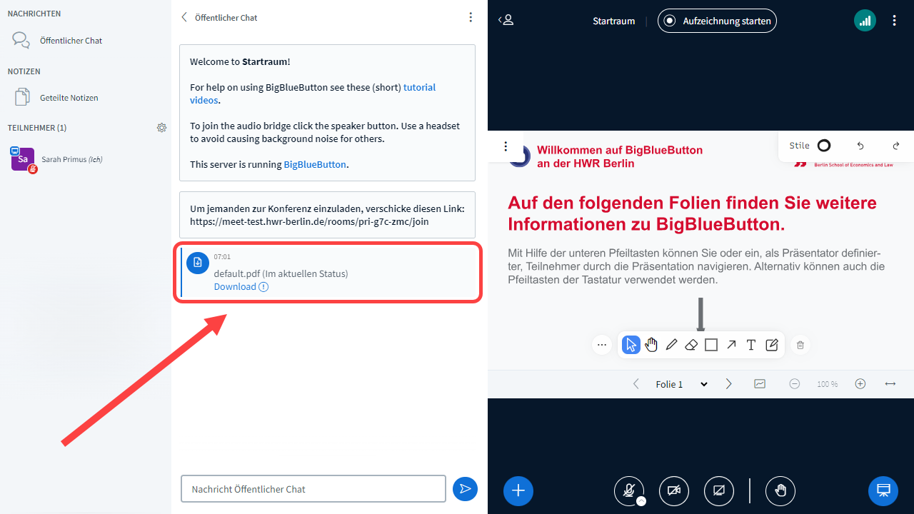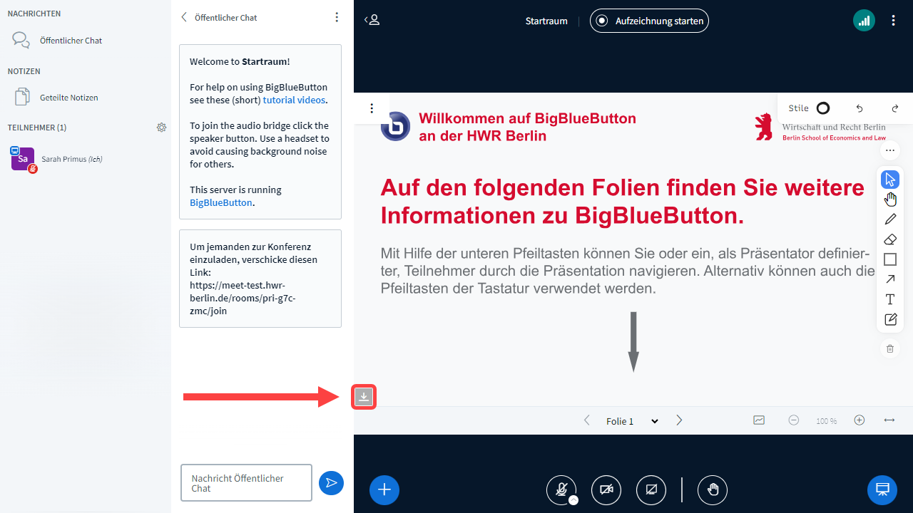 - Einen Downloadlink für die Präsentation im aktuellen Stand versenden