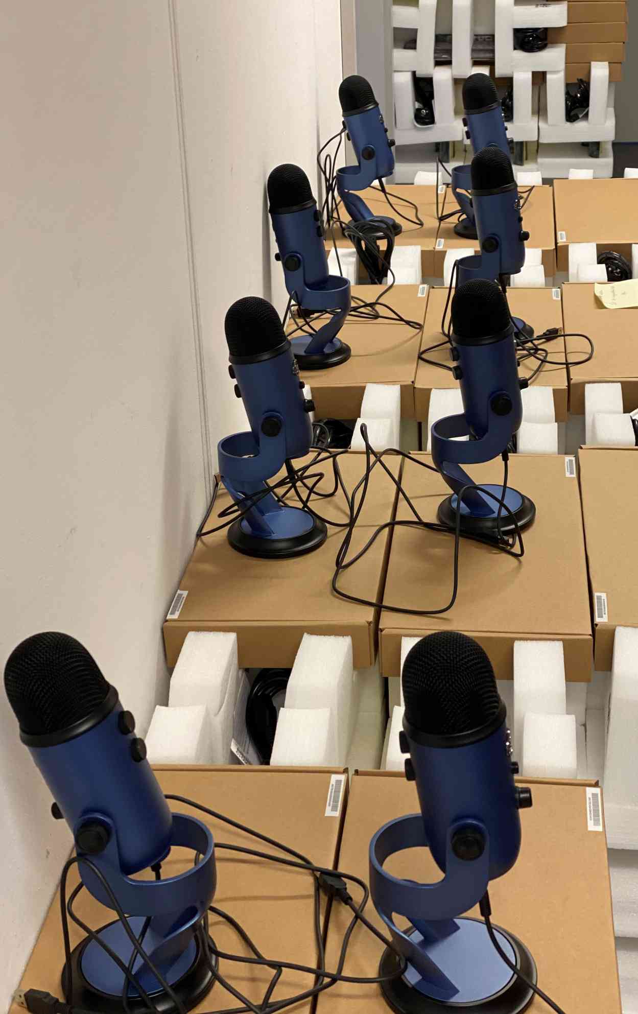 Damit vor allem die Dozierenden auch für die Onlineteilnehmenden gut zu verstehen sind, steht für den „Blended Classroom“ ab sofort das USB-Mikrofon ‚Blue Yeti‘ zu Verfügung. Mit Hilfe von einem stufenlos einstellbaren Gain und vier verfügbaren Richtcharakteristika erlaubt das Kompakte Mikrofon eine vergleichsweise gute auditive Abnahme der Präsentierenden und der Präsenzteilnehmenden. Mit immer größer werdendem Abstand zum Mikrofon und je nach Raumakustik verschlechtert sich die Audioqualität zunehmend, stellt jedoch kein K.O.-Kriterium da. Ausgiebige Testdurchläufe sowie die bereits durchgeführten Schulungen haben gezeigt, dass auch Präsenzteilnehmende von den hintersten Sitzplätzen für Onlineteilnehmenden hörbar und zu verstehen sind. Die größte Herausforderung für eine gute Audioqualität und somit die Voraussetzung für eine angenehme, lernfördernde Erfahrung der