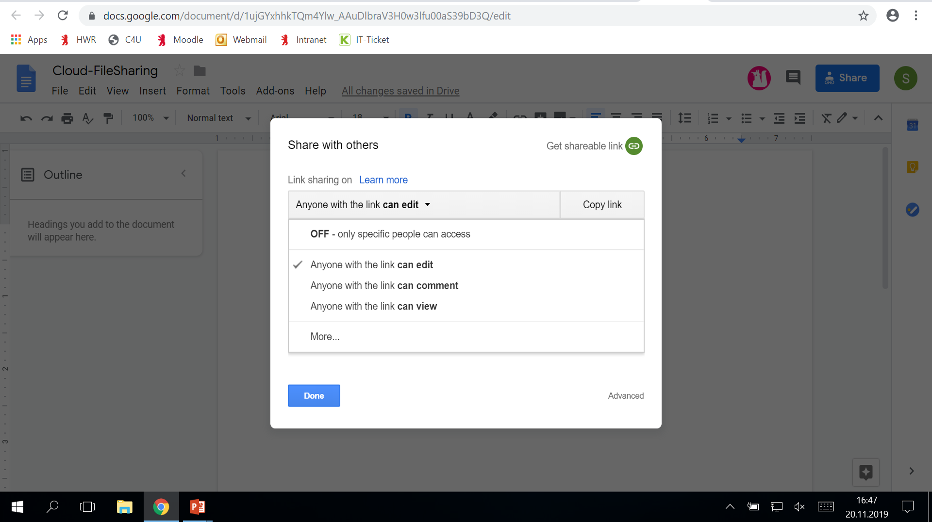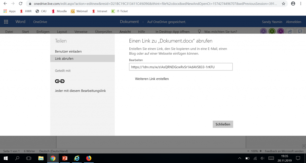 - Das Dokument kann mit verschiedenen Zugriffsrechten geteilt werden.