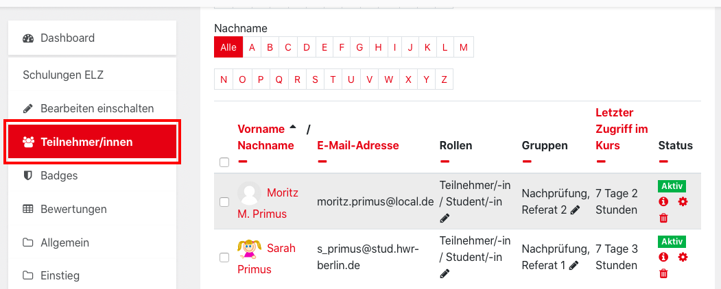 Using the group function in Moodle, you can also open the assignment only for a certain group of participants. This is useful, for example, for make-up exams, cancellations or group exams. To create and define a group, proceed as follows:
