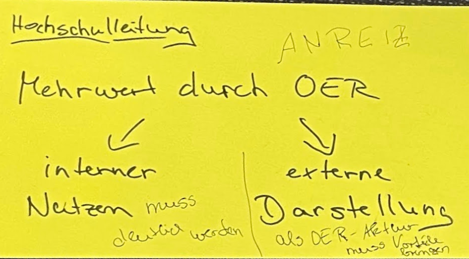 Mir wurde einmal mehr die Bedeutung von Policies deutlich, die den freien Zugang zu Bildungsressourcen fördern und Vorteile mit sich bringen, wie die Verbesserung der Chancengleichheit und die Förderung einer globalen Wissensgemeinschaft. Aber bedingt eine OER Policy den Zugang zu (eigenen?) Repositorien? Vielleicht in Berliner Kooperationen? Oder sollte man hier auf Initiativen durch das KNOER Netzwerk hoffen? Oder Policies ohne eigene Archivsysteme andenken?