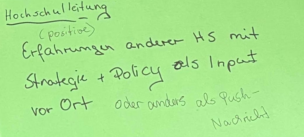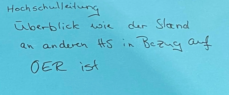 In der Diskussion ging es auch darum, ob die Unterstützung von hochschulinternen Servicestellen lt. Open Policy an zwei Bedingungen geknüpft werden kann. Zum einen muss das gemeinsam erstellte Material studierendenzentriert sein – d.h. an die Verwendung in der Lehre ausgerichtet, zum anderen muss es als OER veröffentlicht werden.