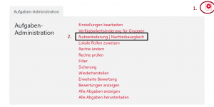 2. Klicken Sie auf das Zahnradsymbol. Es öffnet sich die Test-Administration bzw. die Aufgaben-Administration.