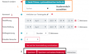 5. Wählen Sie unter Nutzer/in ändern bzw. überschreiben den/die entsprechende Studierende/n aus.