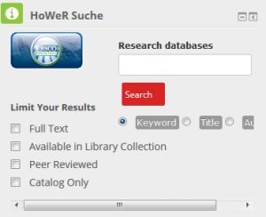 Auf Ihrer persönlichen Startseite finden Sie unten rechts den Block HOWeR Suche. Damit haben Sie direkt aus Moodle heraus Zugriff auf die Bibliothekssuche nach gedruckten und elektronischen Medien an der Hochschule. Falls Sie den Block nicht auf Ihrer Moodlestartseite finden, setzen Sie diese bitte auf die Standardeinstellungen zurück.