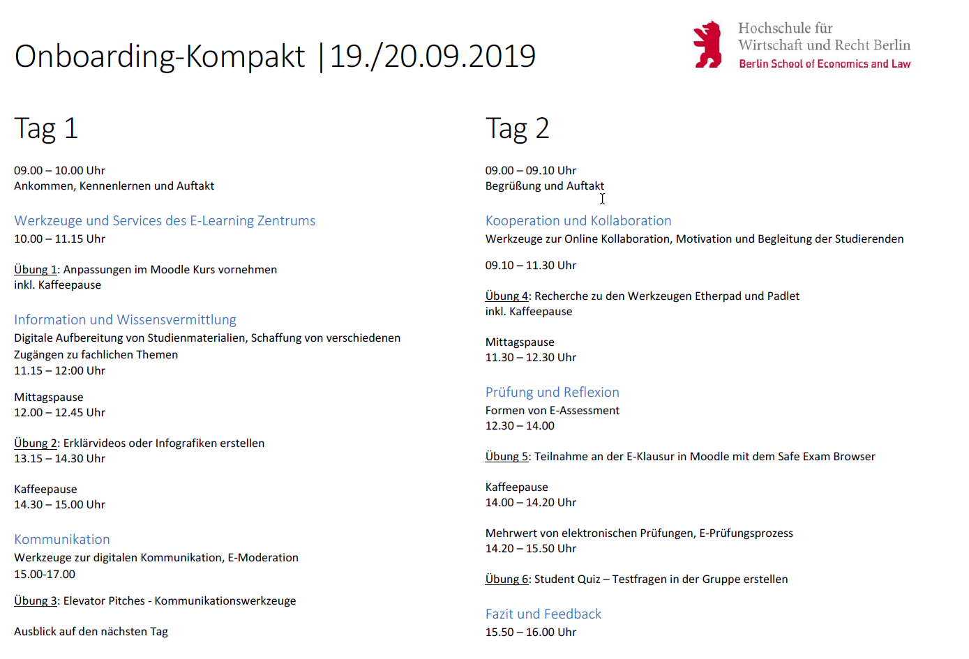 Einige Male erreichte uns auch der Wunsch nach einem konzentrierten Kompakt-Kurs, an dem wir in maximal 2 Tagen in Präsenzform die wichtigsten Inhalte des Kurses besprechen. Gerade auch, weil neuberufene Professorinnen und Professoren im ersten Semester doch einer recht hohen Lehrbelastung nachgehen. Wir haben diese Anforderung ernst genommen und freuen uns nun, ein neues Kursangebot präsentieren zu dürfen.
