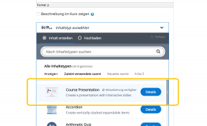 Nachdem Sie auf Hinzufügen geklickt haben, suchen Sie nach dem Inhaltstyp Course Presentation und wählen diesen aus.