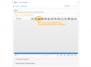 Geben Sie Ihrer interaktiven Präsentation einen Namen. Mithilfe des kleinen Bild-Icons in der Werkzeugleiste können Sie die Bilder, die Sie aus PowerPoint exportiert haben, hinzufügen.
