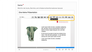 In der oberen Werkzeugleiste haben Sie die Möglichkeit Fragen oder andere H5P-Quiztypen hinzuzufügen. Auf diesem Wegen können Sie mit Ihren Studierenden interagieren.
