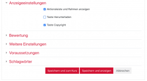 Wenn sie mit der Bearbeitung ihrer H5P-Präsentation fertig sind, scrollen Sie nach unten und entfernen das Häkchen bei Taste Herunterladen.