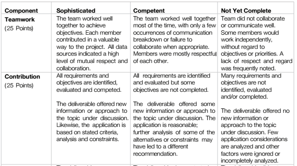 Wenn ich dies im Workshop erzähle, wird manchmal die Frage gestellt, wie ich als Dozent denn mit der Bewertung umgehe. Konkret bewerte ich unter Rückgriff auf ein Schema wie dieses von der Carnegie-Mellon-Universität – durch die einzelnen Abschnitte und die textuelle, detaillierte Erläuterung wird Transparenz hergestellt. Gleichzeitig sind die Bewertungen für Praktiker nachvollziehbar und nicht wirklich überraschend. So eine Rubrik verwende ich für alle „weichen“ Leistungsbewertungen, d.h. nicht für Klausuren, aber für Abschluss- und Hausarbeiten, Blogs, Präsentationen und Projekte.