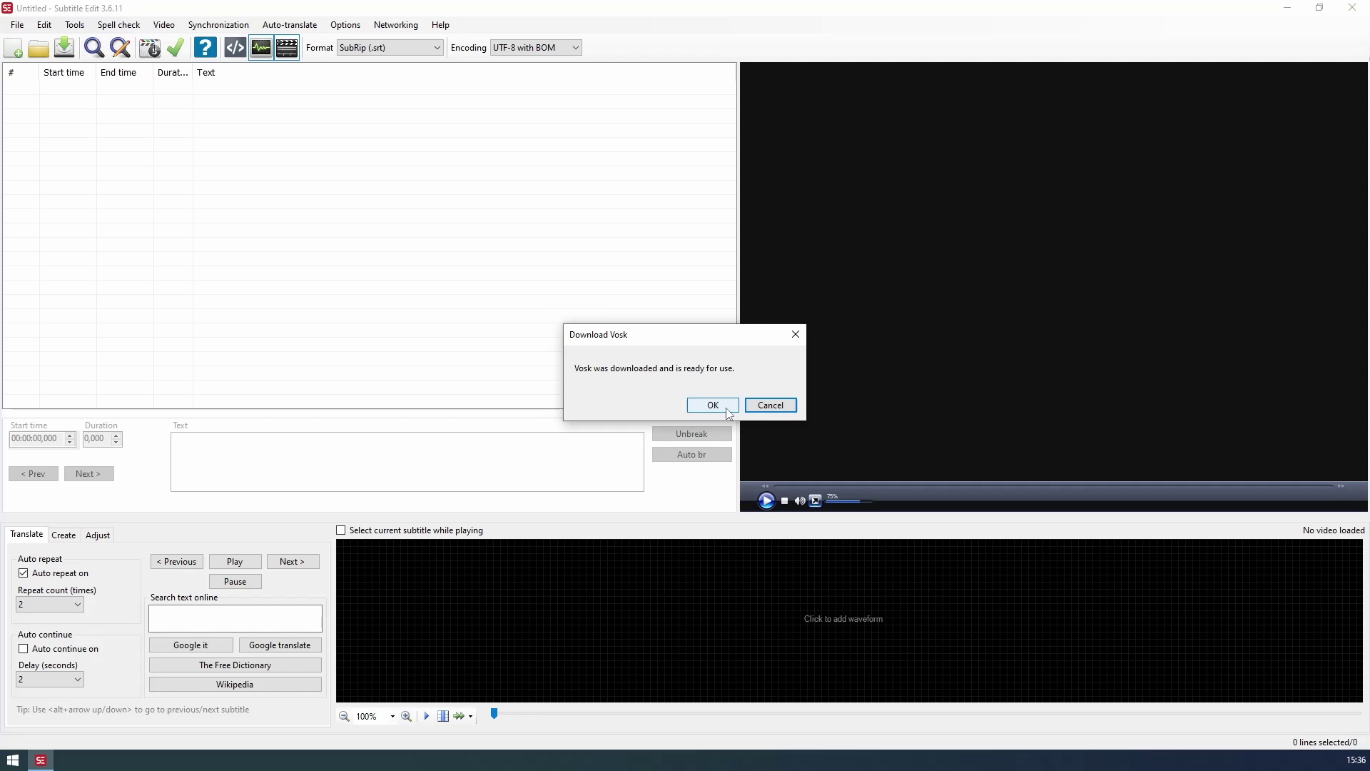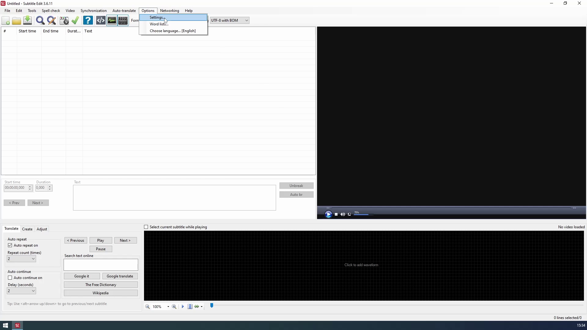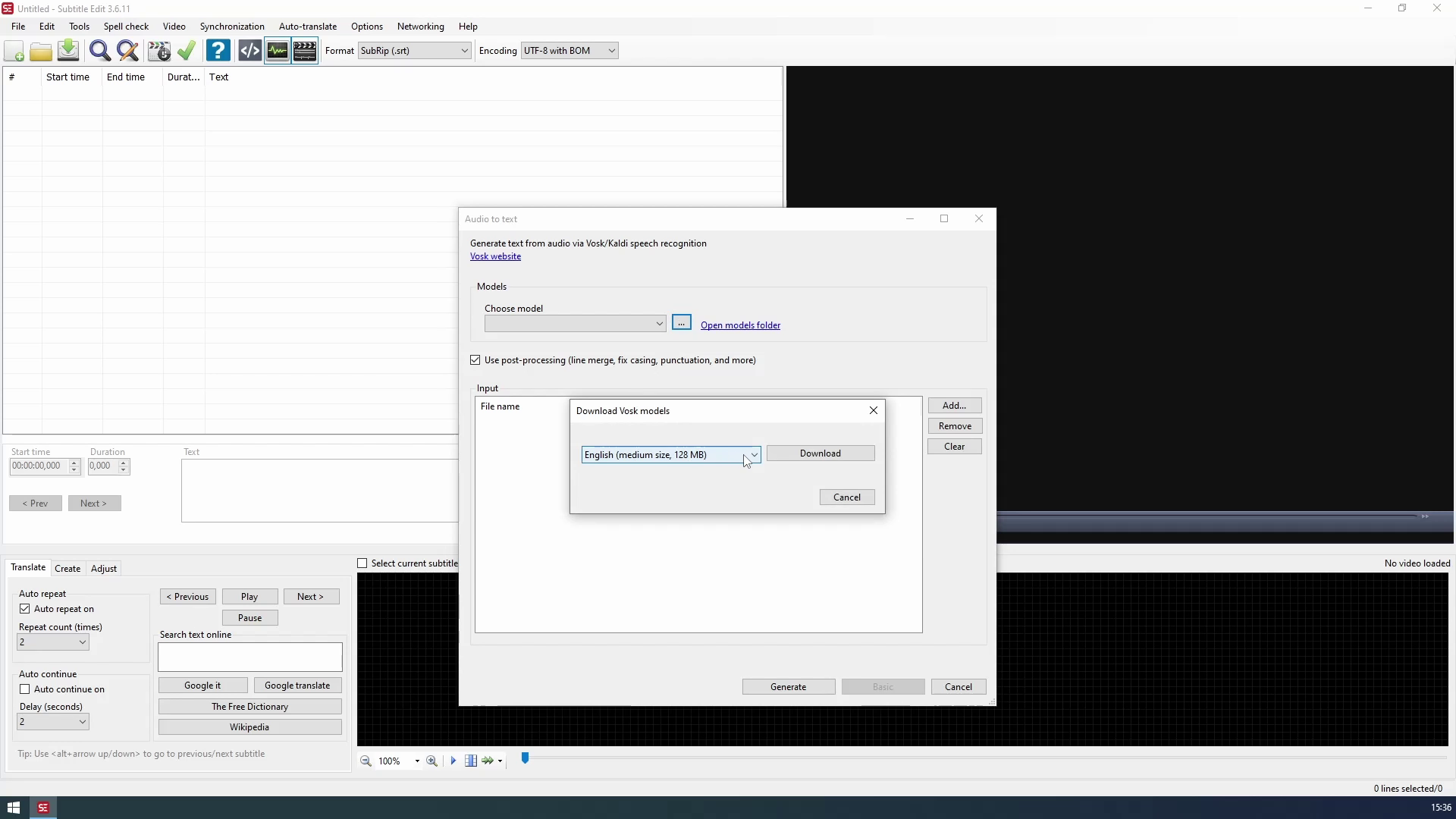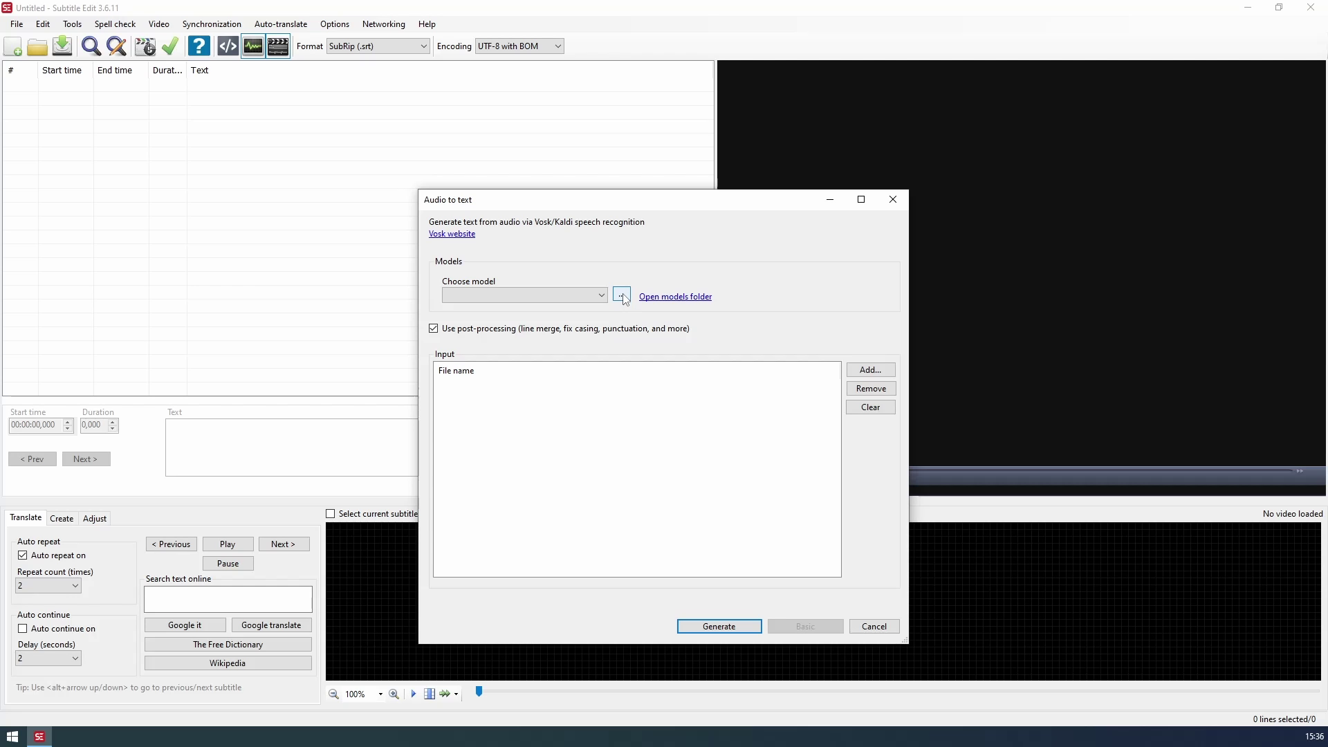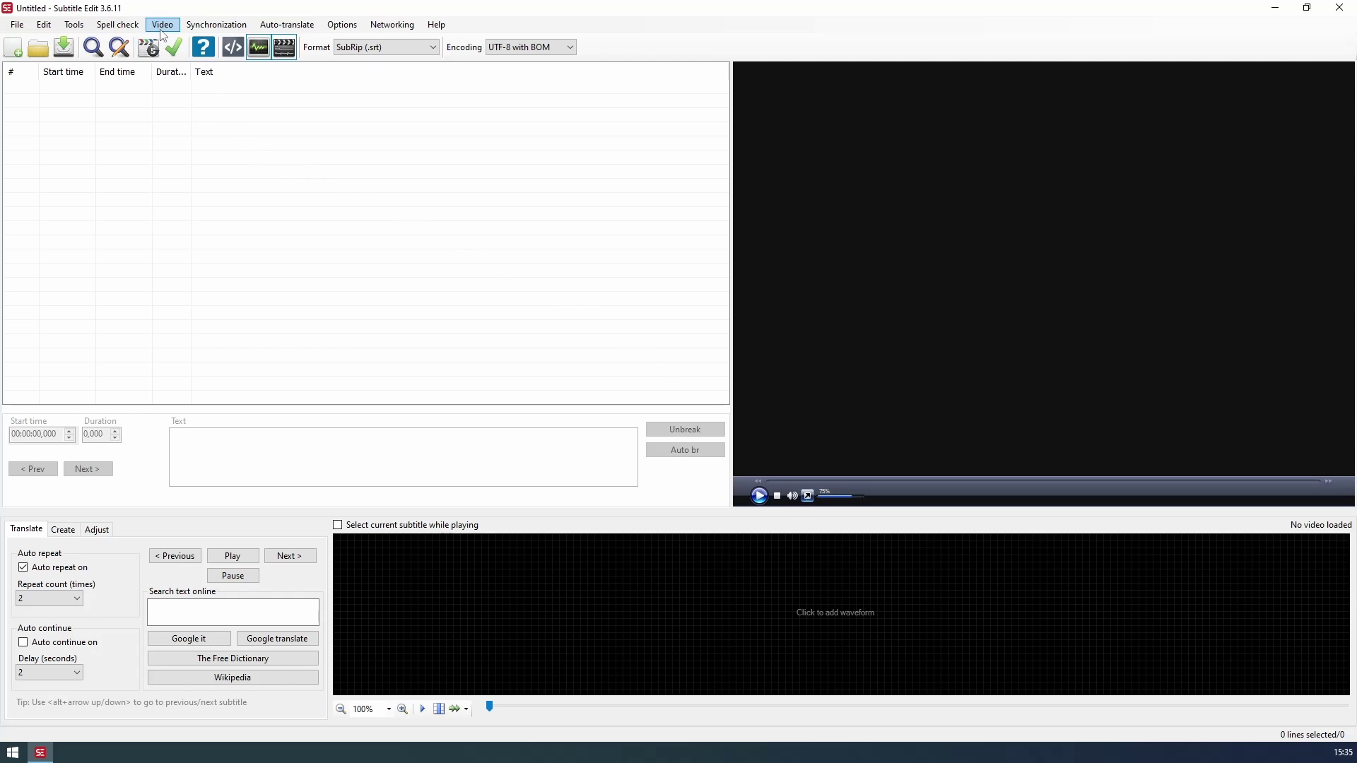 Beachten Sie, dass für das automatische Erstellen von Untertiteln sowie für das Abspielen von Audio- und Videodateien das Programm, wie in dem Tutorial „Subtitle Edit einrichten“ beschrieben, konfiguriert sein muss.