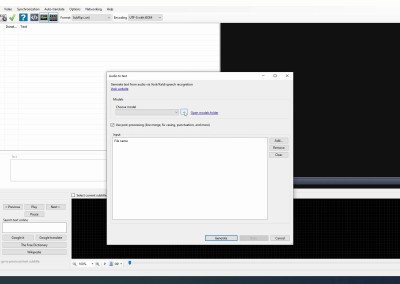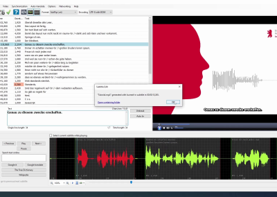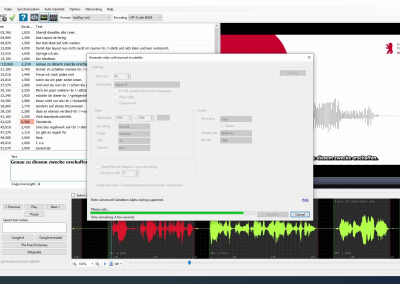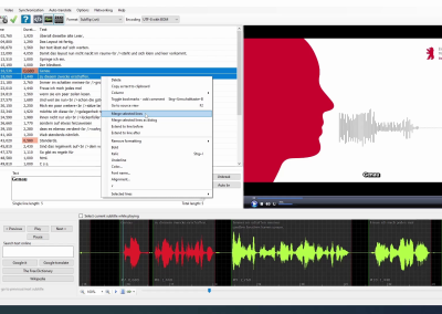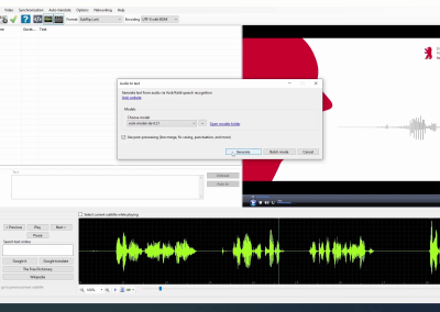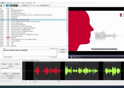 Mit Hilfe der Software „Subtitle Edit“ können Untertitel für Videos erstellt und bearbeitet werden. Die integrierte Sprache-zu-Text (Speech-to-text) Funktion erlaubt die automatische Transkription Ihrer Audio- und Videodaten. Alte Untertiteldaten können importiert und bearbeitet werden wobei mehr als 300 unterschiedliche Datenformate unterstützt werden.