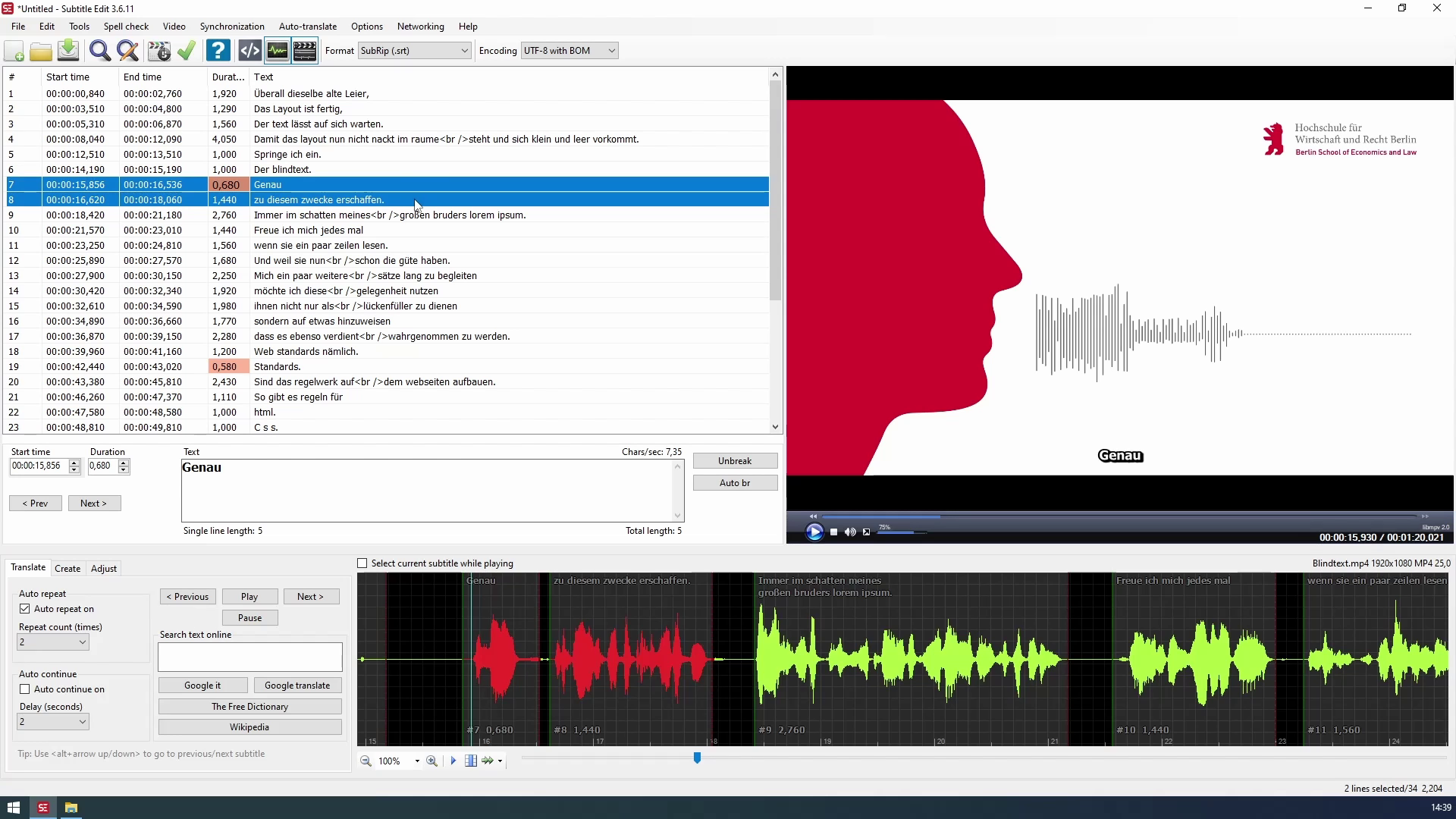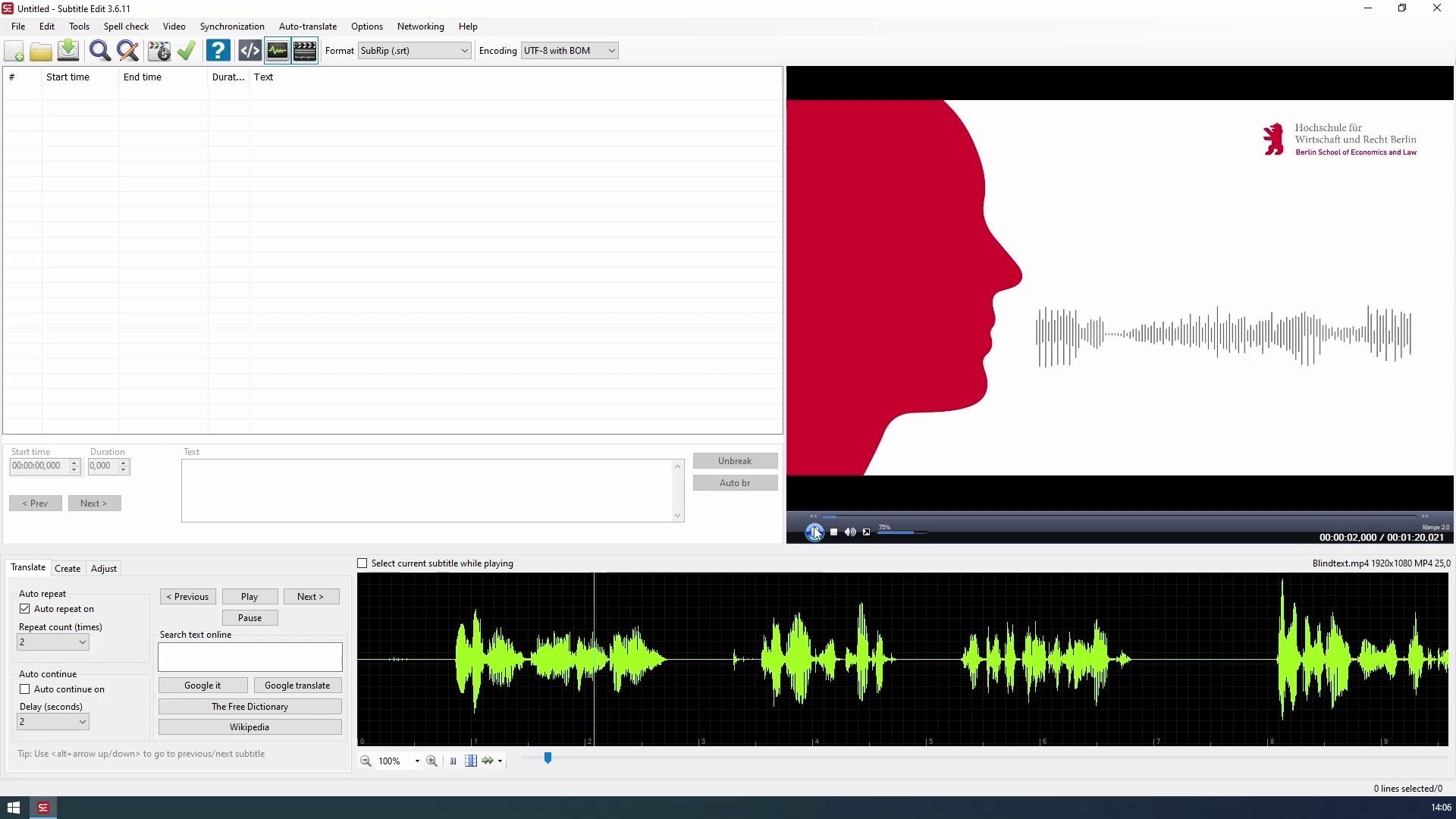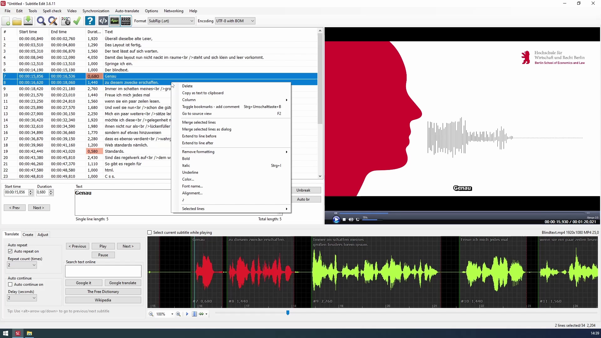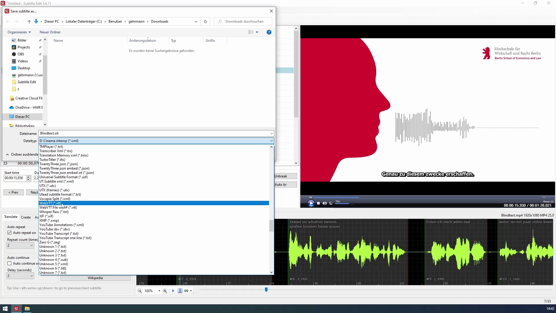 Subtitle Edit steht nun auch allen Mitarbeitenden und Lehrenden der HWR Berlin zur Verfügung