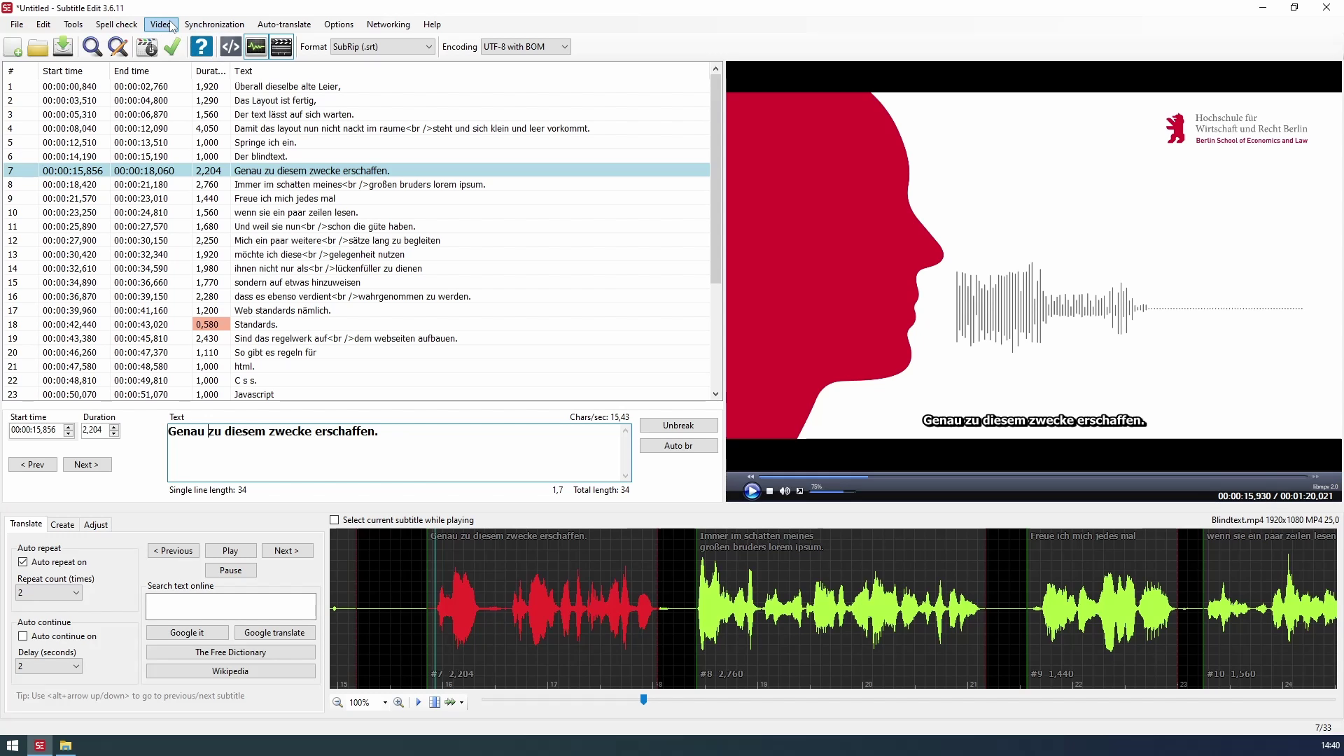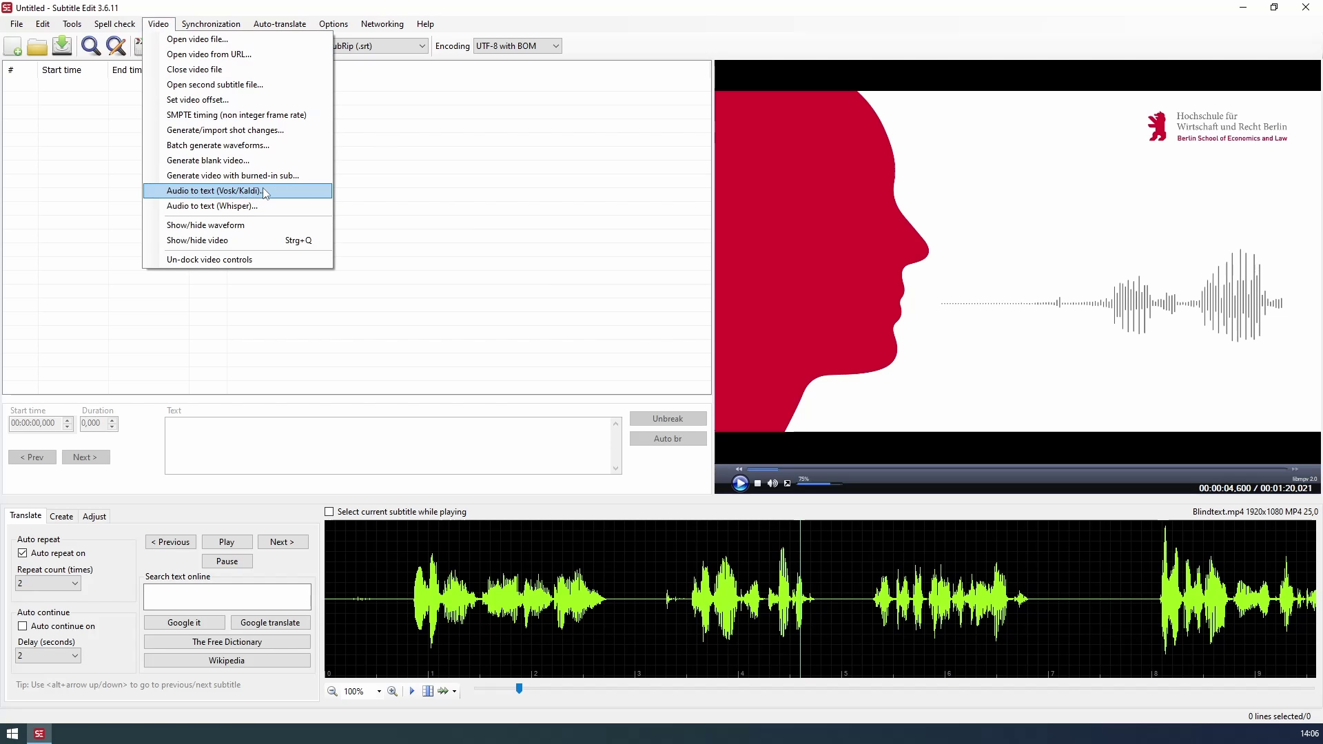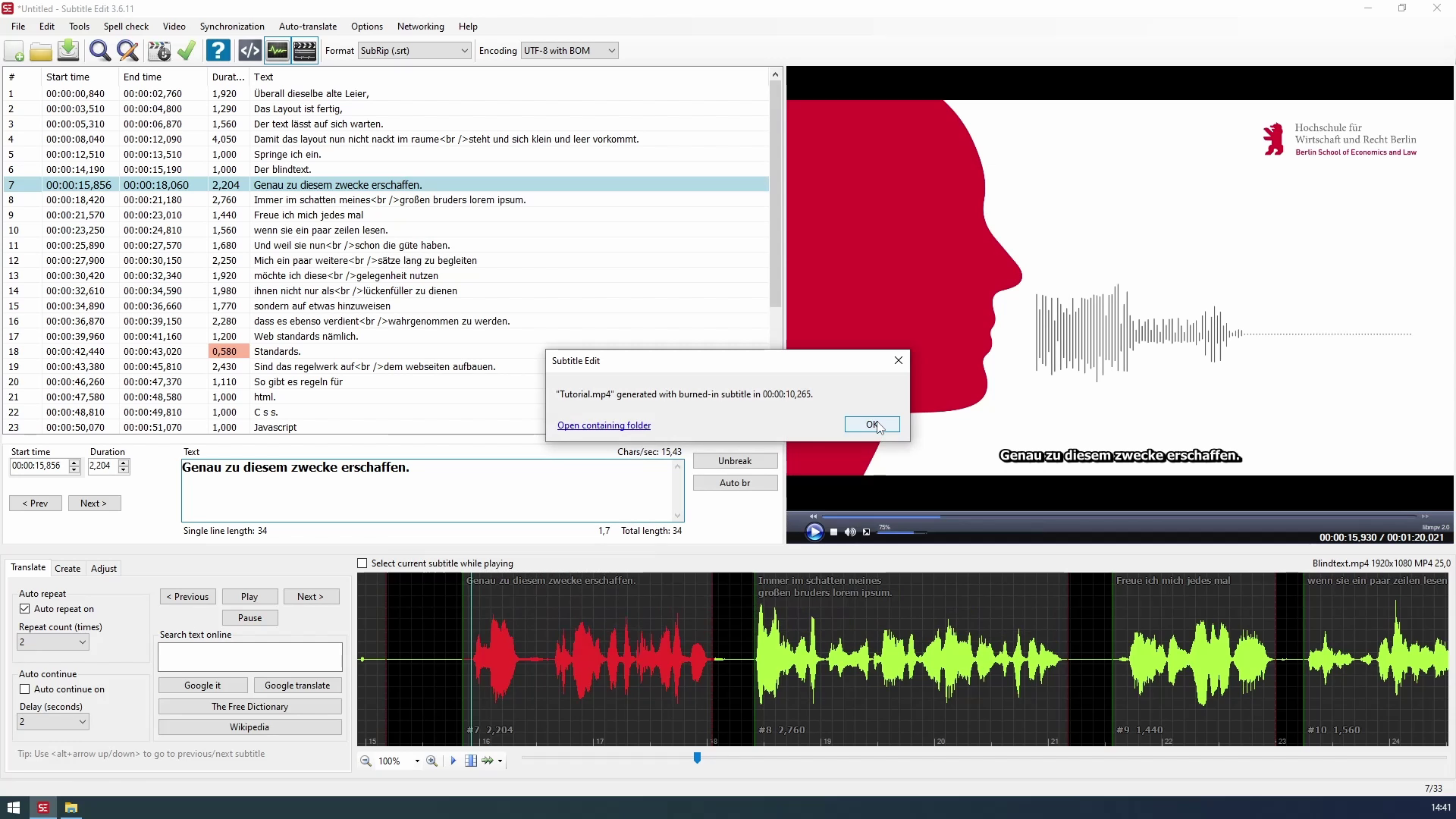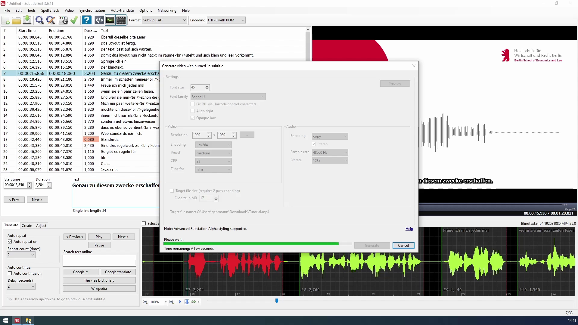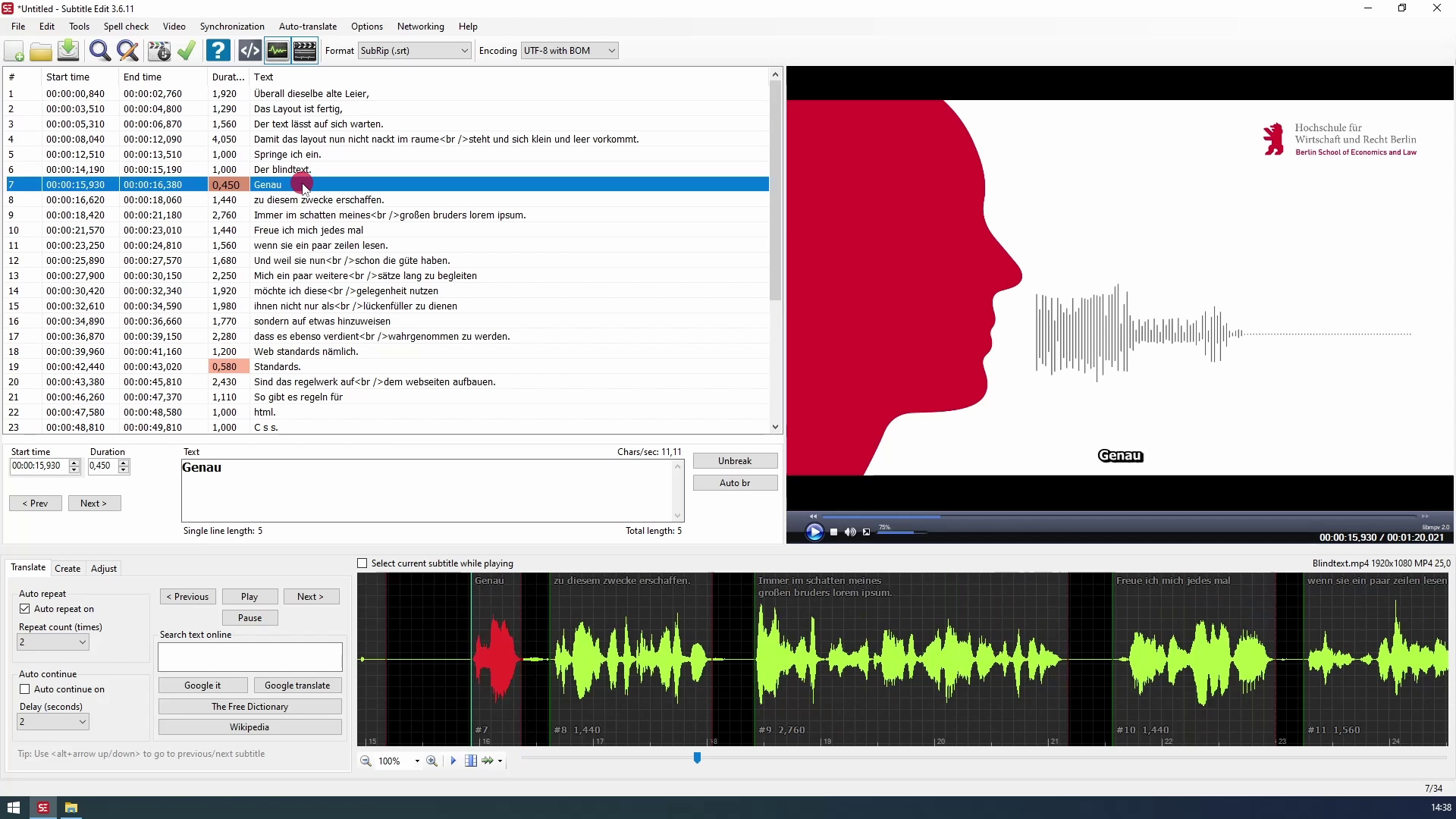 Subtitle Edit steht nun auch allen Mitarbeitenden und Lehrenden der HWR Berlin zur Verfügung