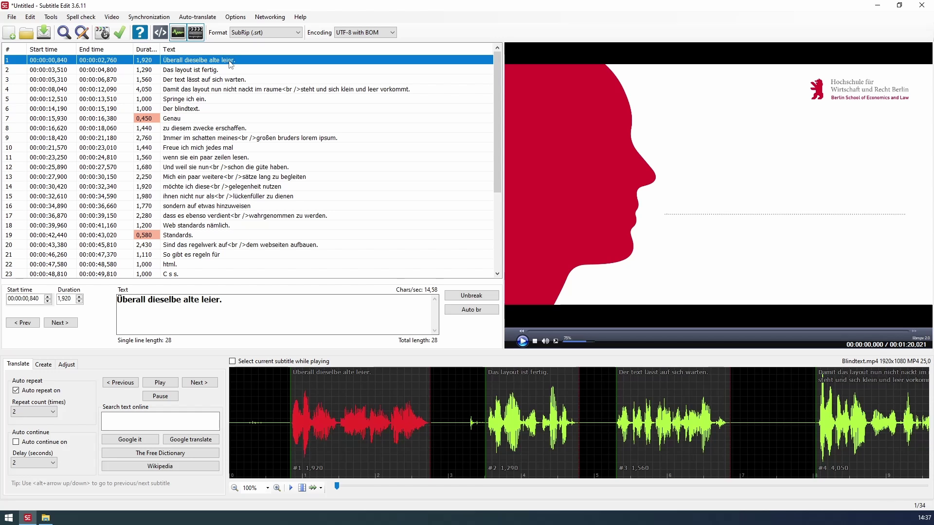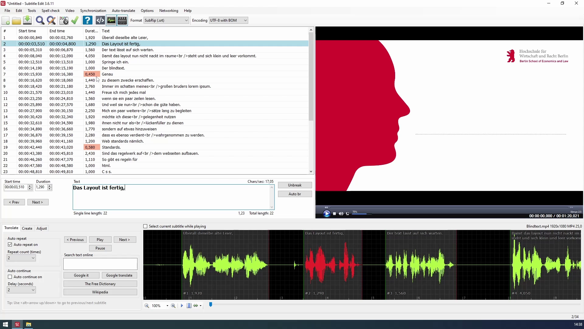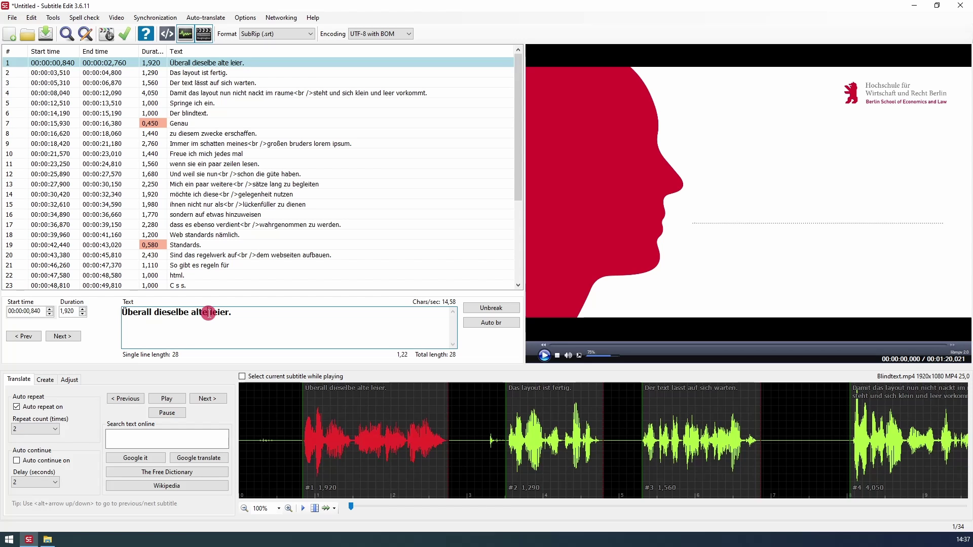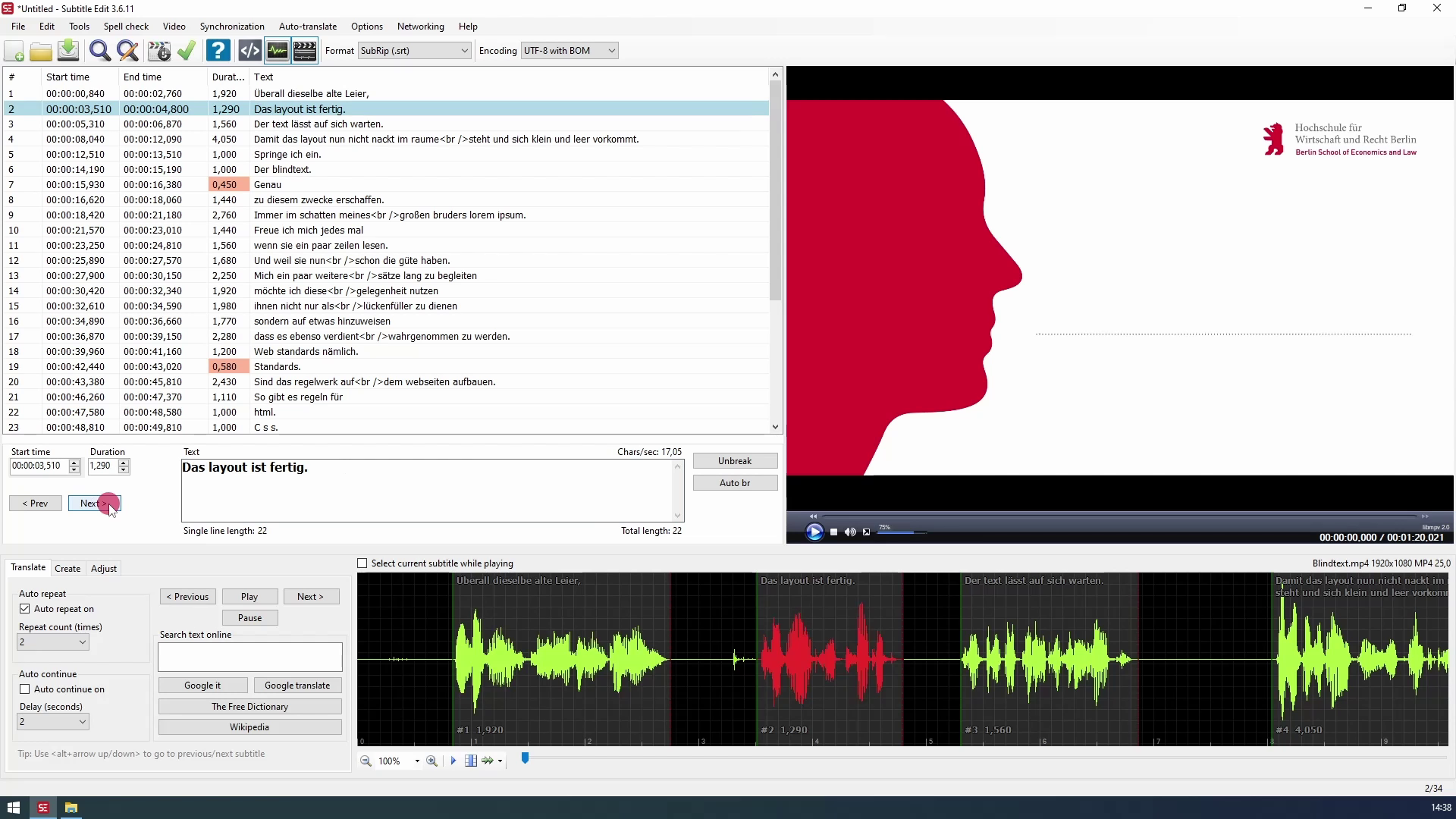 Subtitle Edit steht nun auch allen Mitarbeitenden und Lehrenden der HWR Berlin zur Verfügung