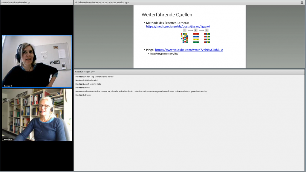 - Frau Professorin Dr. Sticher: „Aktivierende Methoden in klassischen Lehrveranstaltungen„