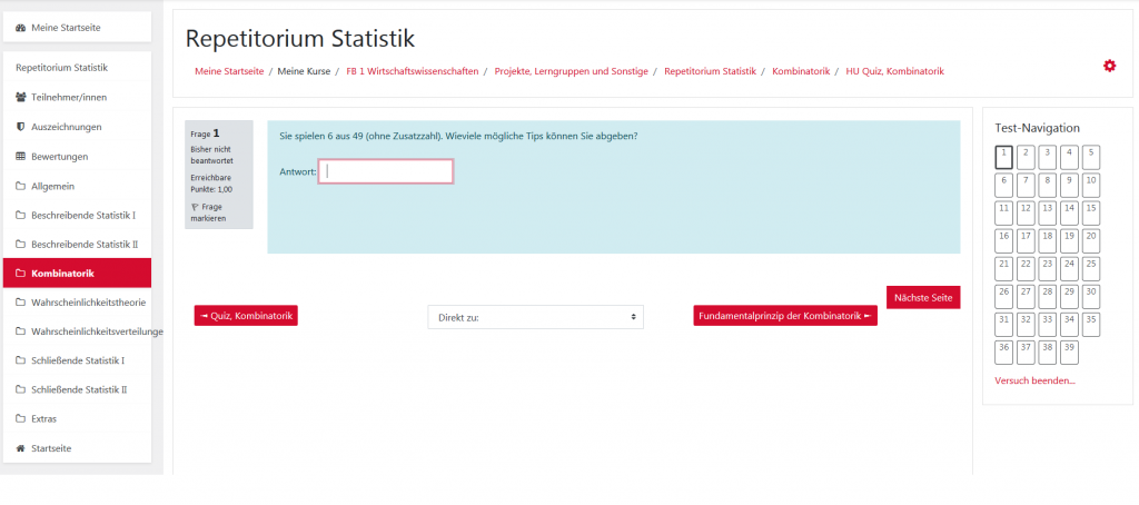 Die Wiederholung des Gelernten – das kann auch online möglich sein. Das Statistik-Repetitorium, verfügbar in Moodle, hilft bei der Klausurvorbereitung, zur Vertiefung statistischer Kenntnisse oder zur Auffrischung. Klassische Themen der Statistik wie die beschreibende Statistik, die Kombinatorik oder die Wahrscheinlichkeitsverteilung werden in einzelnen Kapiteln aufbereitet. Typische Sachverhalte können in Erklärvideos von den Studierendenen wieder und wieder abgespielt werden. Integriert sind auch Rechenaufgaben, zu denen es direkt Feedback gibt. Wie der Moodle-Kurs aufgebaut wurde, welche Übungen sie ausgewählt haben und wie sie überhaupt auf die Idee gekommen sind, haben die Professoren für Wirtschaftsmathematik und Statistik interessierten Kolleginnen und Kollegen im ersten Online-Impuls des neuen Good-Practice-Forums an der HWR Berlin live über Adobe Connect mitgeteilt.